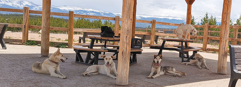 It's the dog days of summer and our sled dogs are excited to meet you! Join us at Snow Mountain Ranch's Dog Park for a meetup with some of the dogs from our team. The dogs are free to run and play and may even be giving smooches! We'll discuss dog care, training, and what it takes to be a musher. For entry we request that you make a minimum $2 per person donation to our BARK (Buy A Round of Kibble) program. We use funds gathered from Hanging with Huskies to help buy the highest quality kibble and treats for our dogs year round! Please drop by the Snow Mountain Ranch Dog Park anytime between 8:00 AM and 11:00 AM. Other dogs are not permitted into the dog park during Hanging with Huskies, so please leave your own furry family members at home!